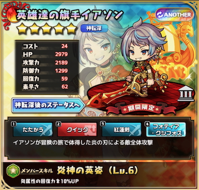 その中でもHP・攻撃力・回復力が高く